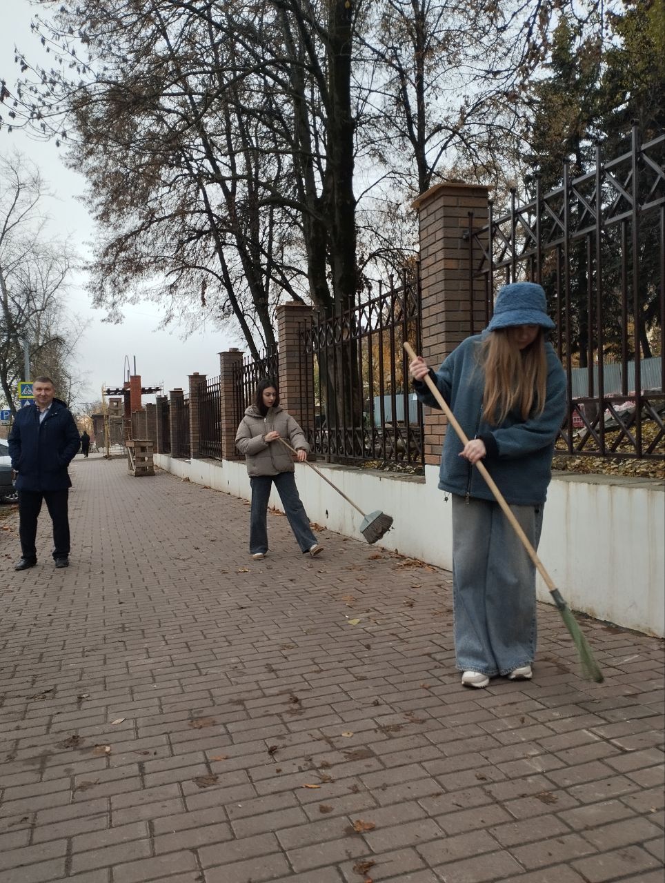 Несмотря на слякотную осеннюю погоду, работа кипела. Ребята активно сгребали опавшую листву, приводя территорию в порядок.