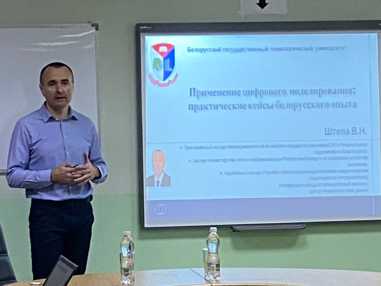 29 октября 2025 года в ПГУ состоялся круглый стол на тему «Применение цифрового моделирования: практические кейсы белорусского опыта». С ключевым докладом выступил доктор технических наук, профессор Владимир Николаевич Штепа. В дискуссии приняли участие преподаватели и студенты Института экономики и управления, а также обучающиеся кафедры «Техносферная безопасность».